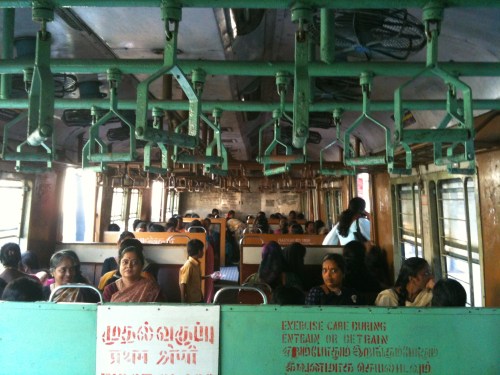 The Chennai subway runs roughly from the Northeast Chennai Beach Station to the Southwest area of Guindy. But to call it a subway is misleading; there’s nothing underground. The sun passes through the train car and settles on the dust of vintage ceiling fans. This tired train service moves throughout the city like a good novel, it picks up speed in some areas, slows down in others. The activities within the passing landscape are as interesting as those within the train car. Along the tracks, teams of boys paint distance markers from white to brown, in the background stands the neo-Gothic San Thome Cathedrale.
